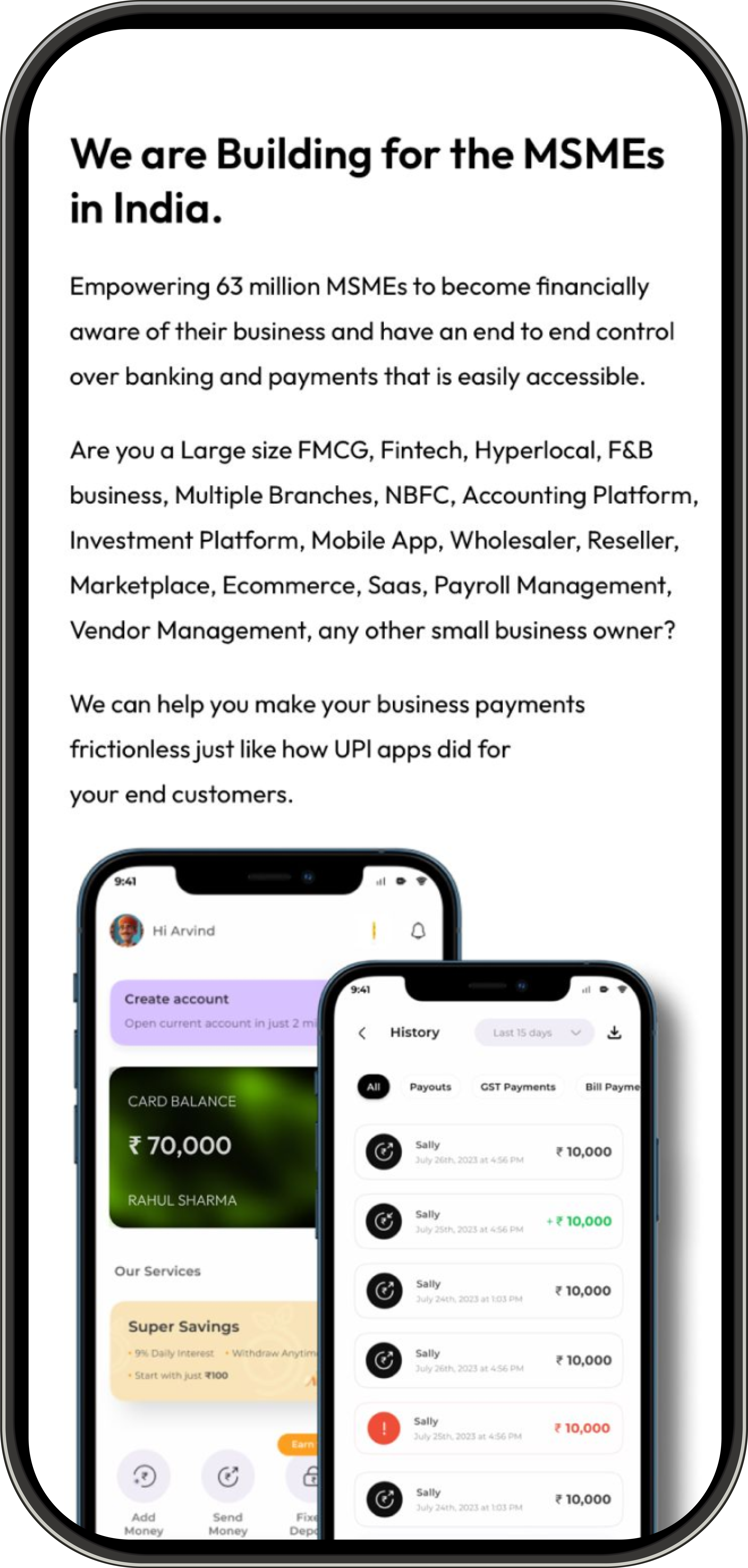 Aeglepay is an online web and mobile application that allows businesses to easily handle money in and out. Aeglepay enables businesses to perform bulk payout transactions in seconds and collect payments from customers via UPI, QR, and bank transfers. Aeglepay also allows businesses to produce invoices that can be delivered by WhatsApp or email in a one click, complete with a payment collecting URL.