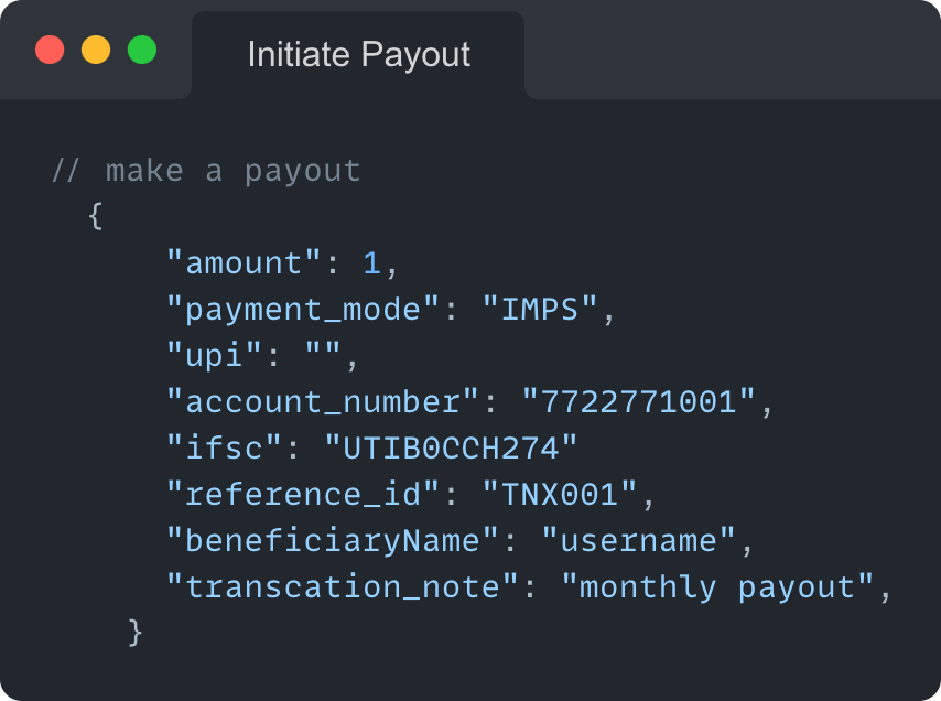 Integrate our APIs in your product and subscribe to our web hooks to make payouts at scale.